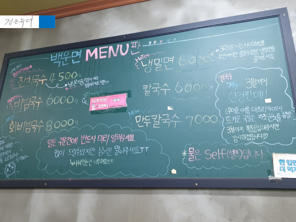 백운면의 메뉴들은 대부분 먹어 봤지만