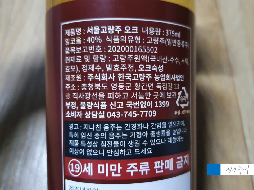 서울고량주 오크의 라벨입니다