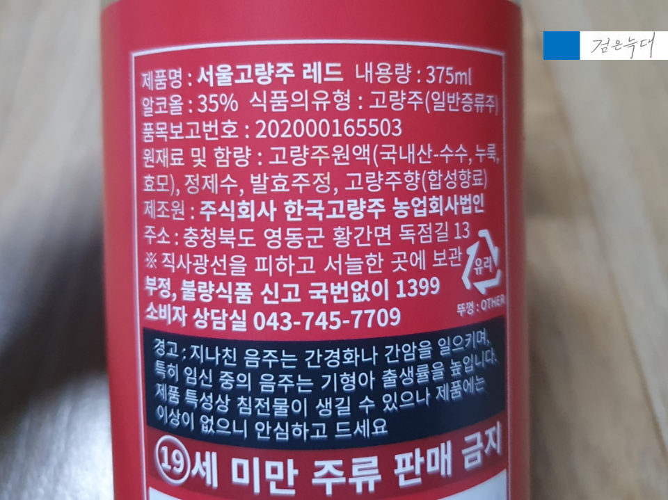 서울고량주 레드의 알콜도수는 35%