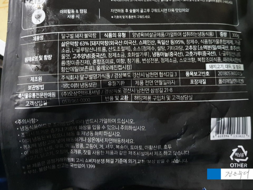 달구벌돼지불막차 원재료 등도