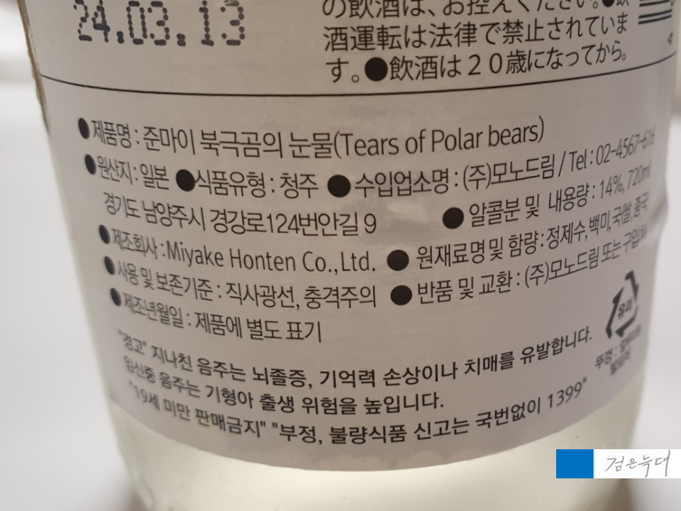 북극곰의눈물 준마이 사케를 소개했습니다