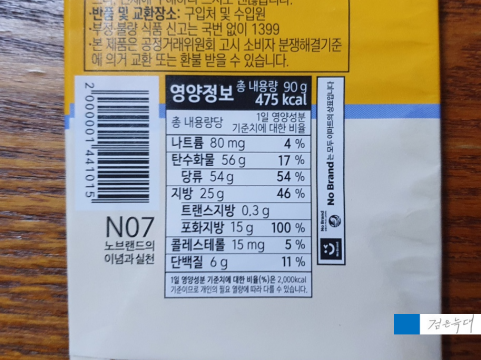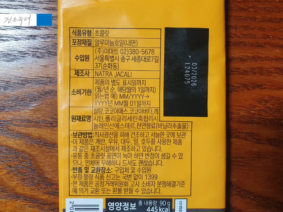 노브랜드밀크초콜렛의 라벨을 보면