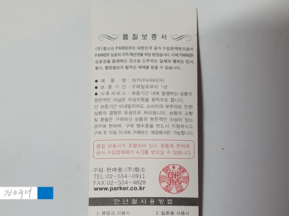뒤집어 보면 품질보증서로 되어 있고