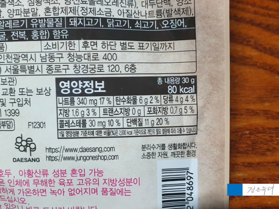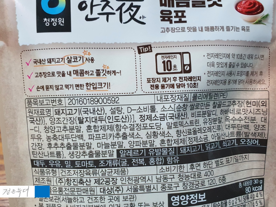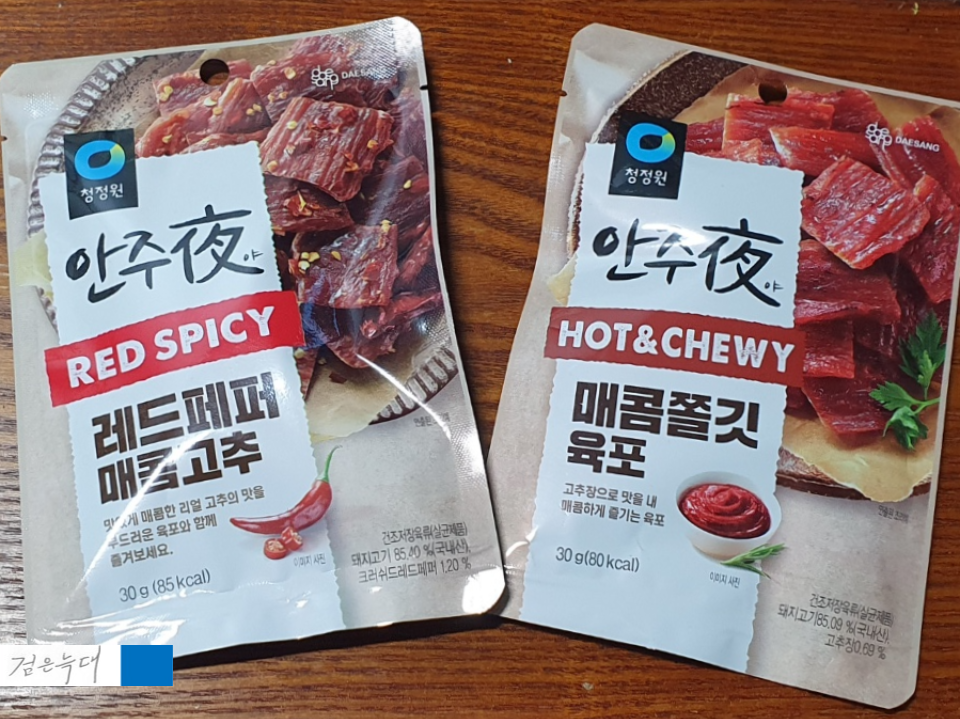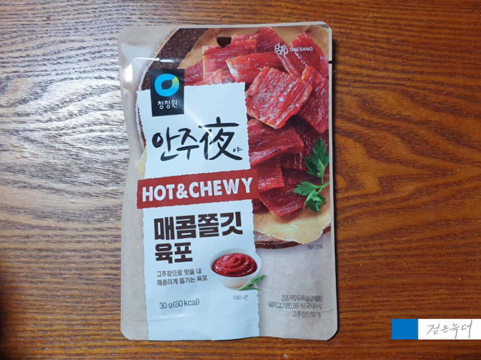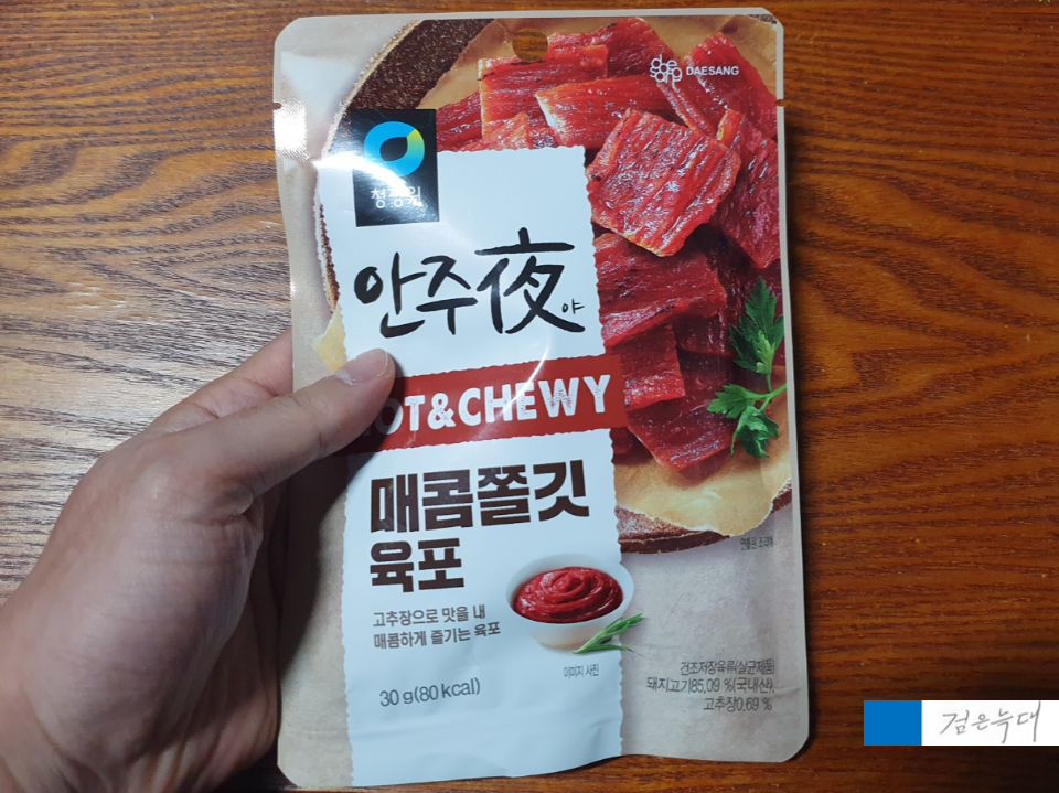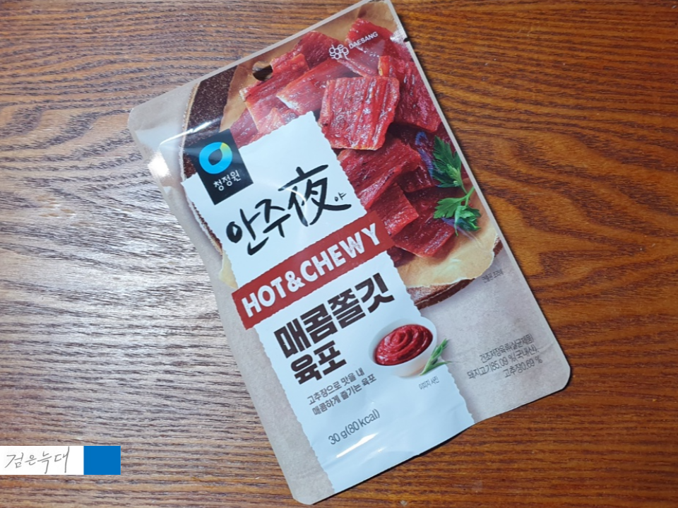 청정원안주야매콤쫄깃육포를 소개했습니다