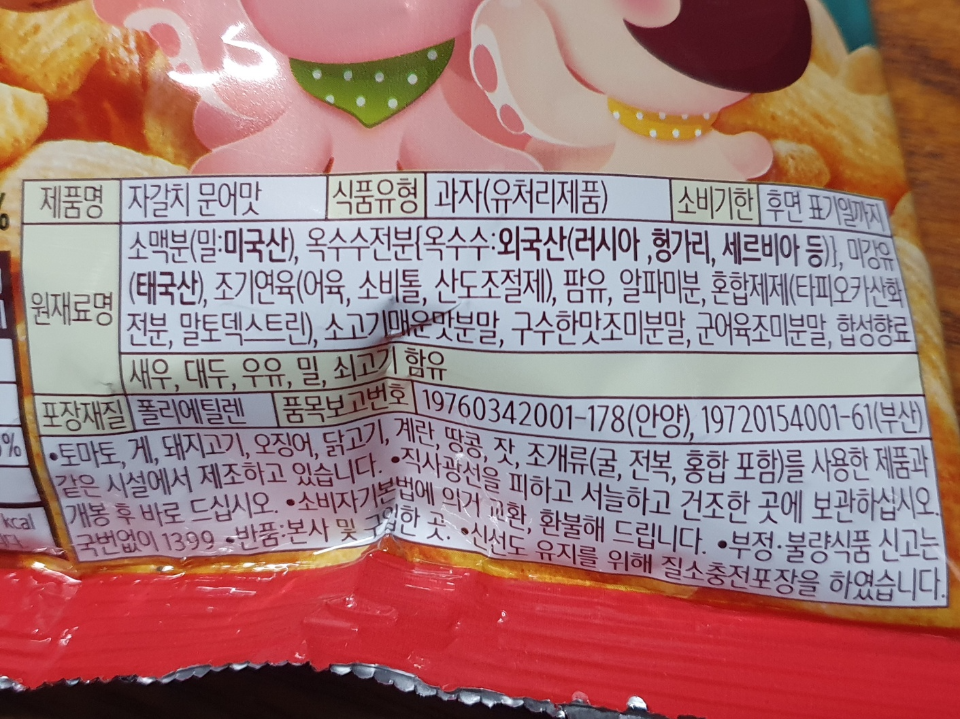 농심스낵인 자갈치문어맛을 소개했습니다