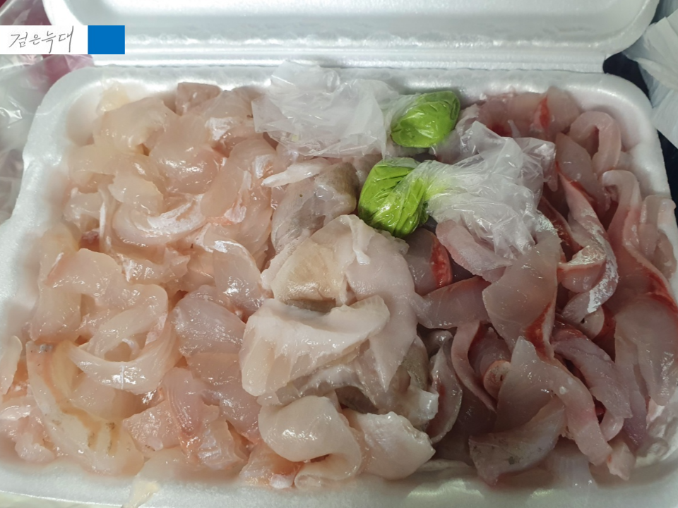 ▷ 손질하고 남은 부분은 매운탕재료로 줌