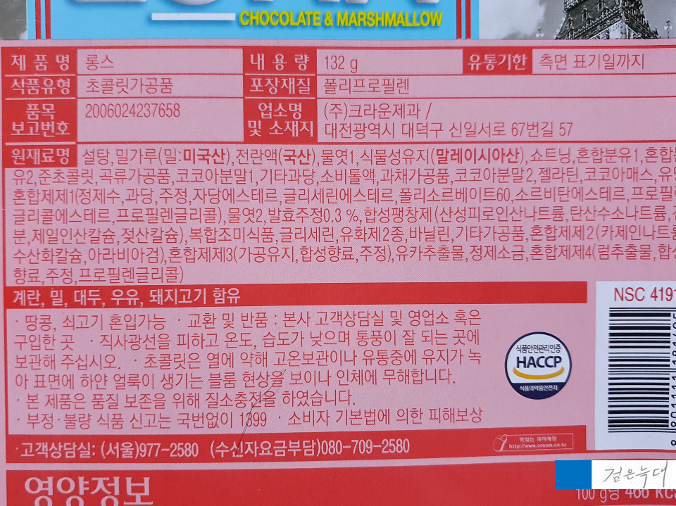 크라운 롱스 원재료와 영양정보