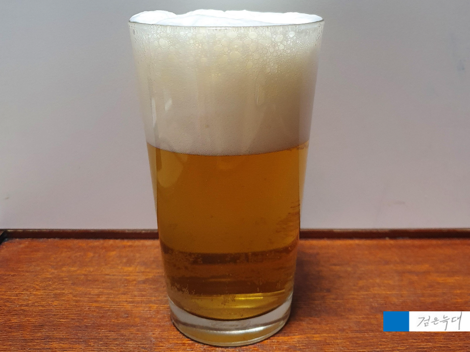 맥주 거품이 꽤 풍성하게 일어납니다