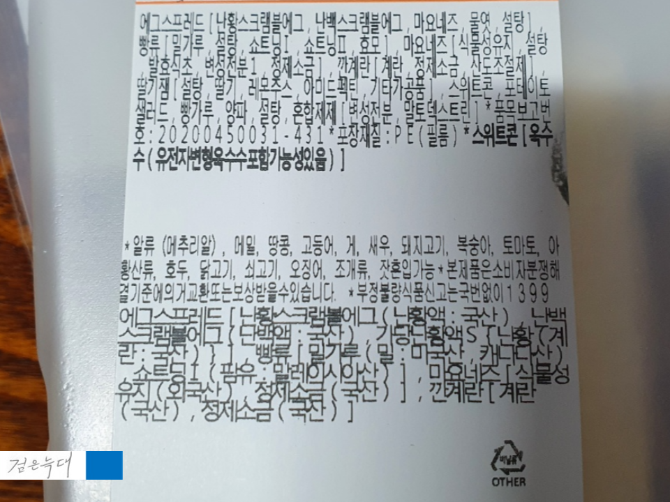 주요 재료 중에 계란이 34.4%가 들어 있네요