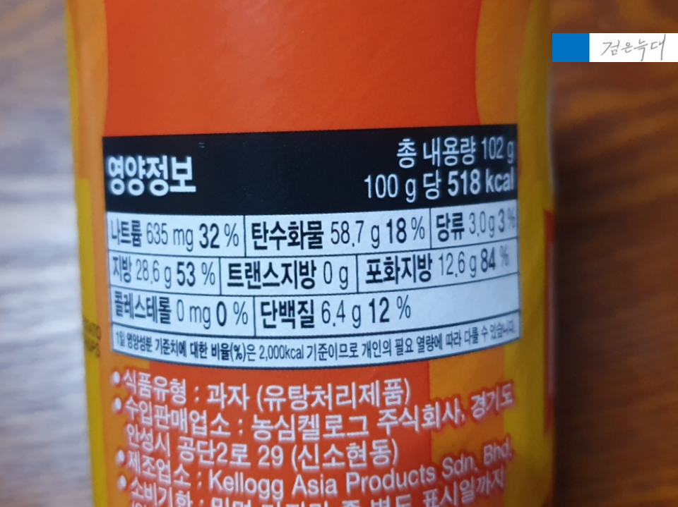 중량은 102g 열량은 528kcal 입니다