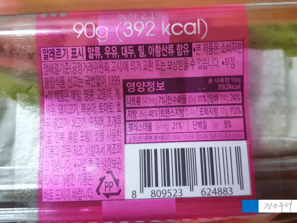 중량은 90g 열량은 392kcal입니다