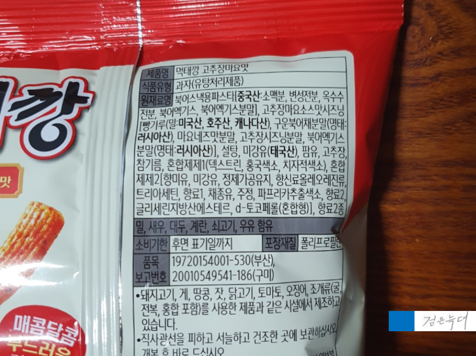 먹태깡 고추장마요맛의 원재료입니다