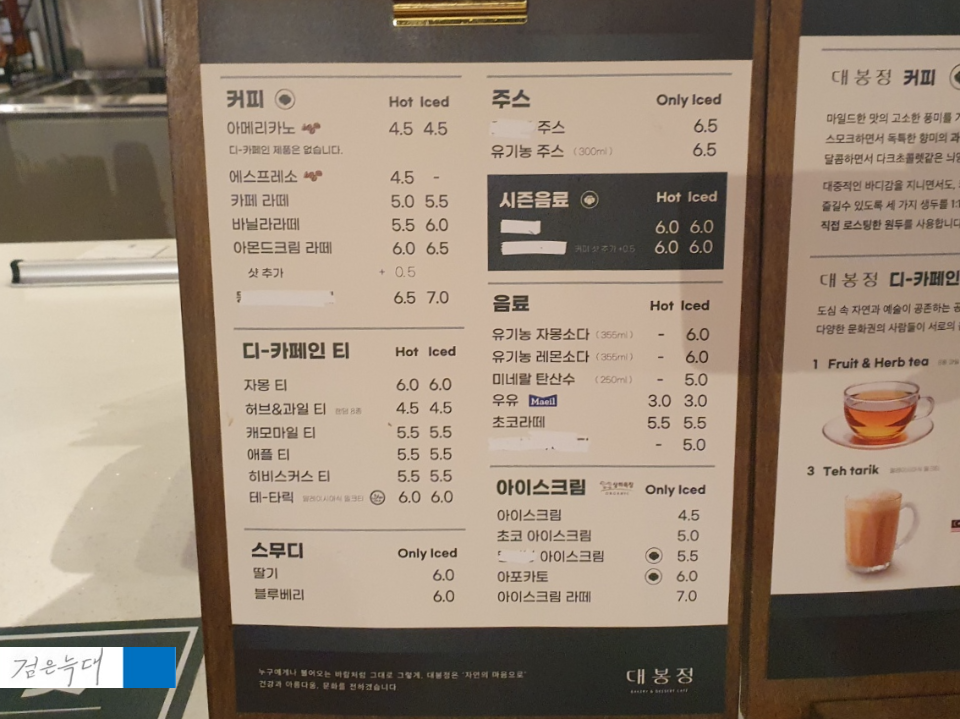 대봉정은 초창기에는 커피가
