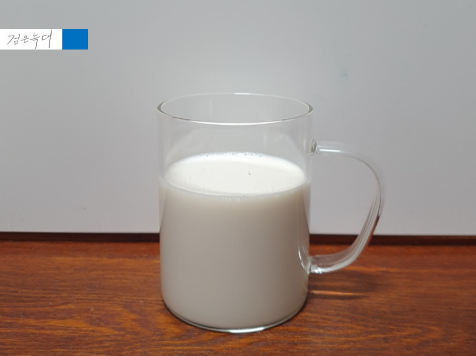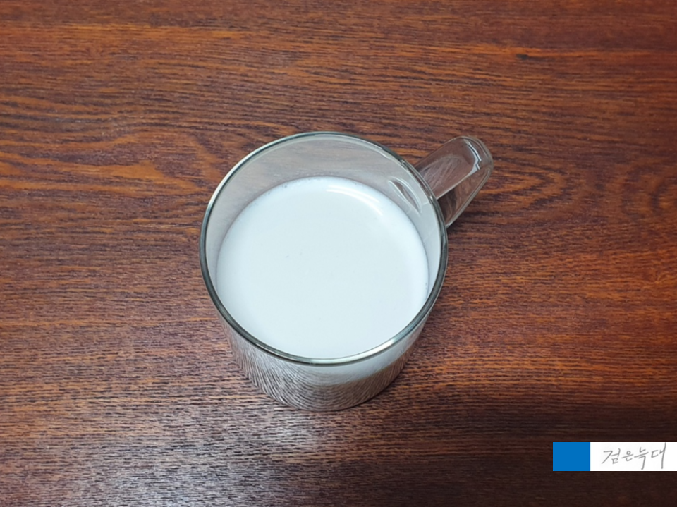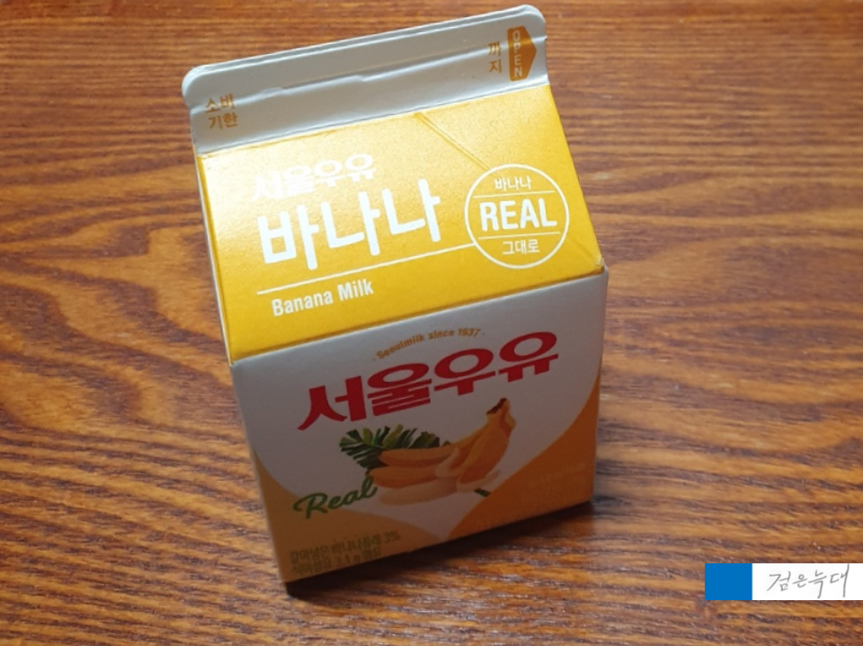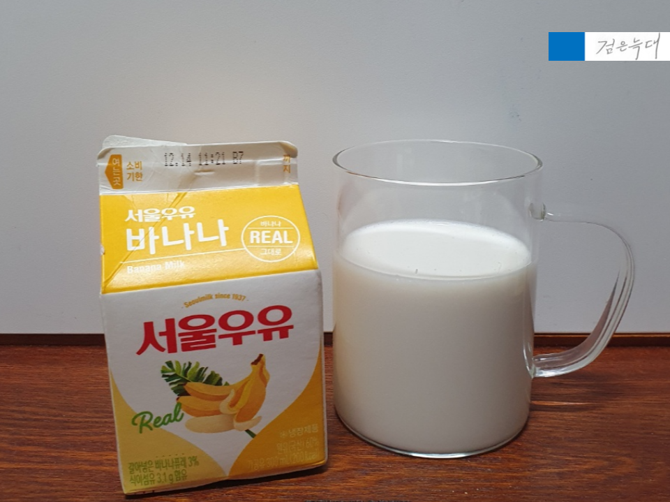 ▷ 우유에 바나나 갈아 넣은 맛이 남
