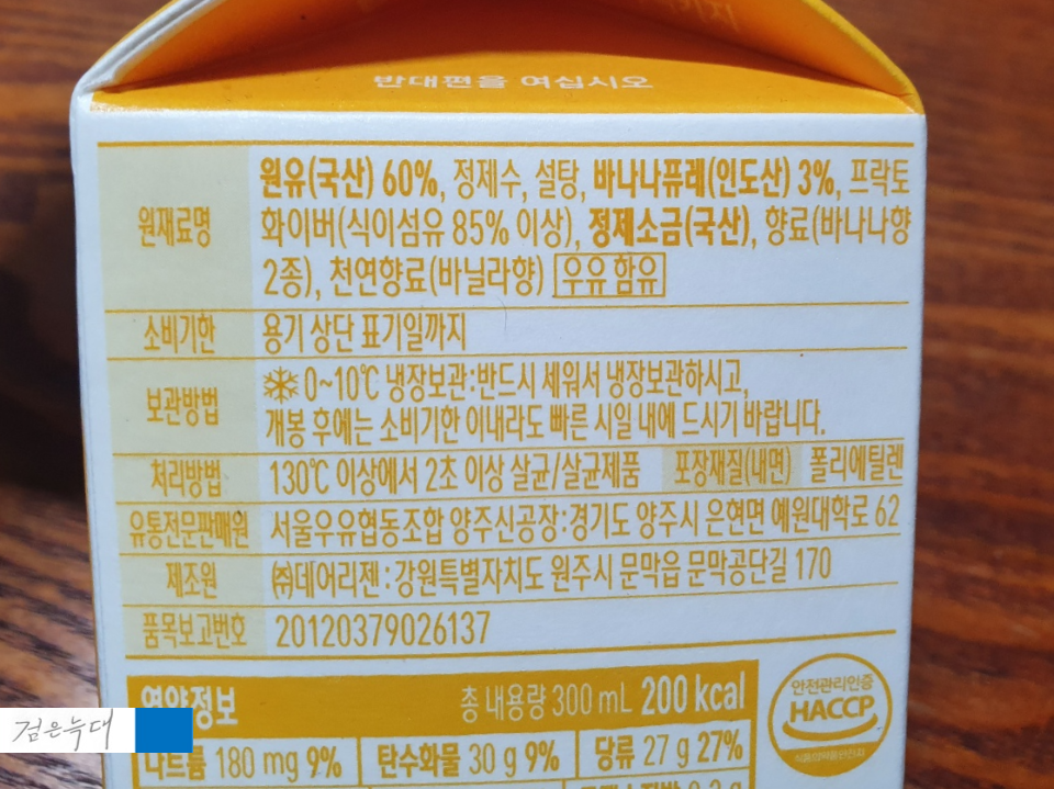 서울우유 바나나 원재료입니다