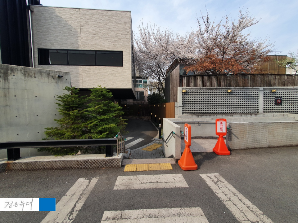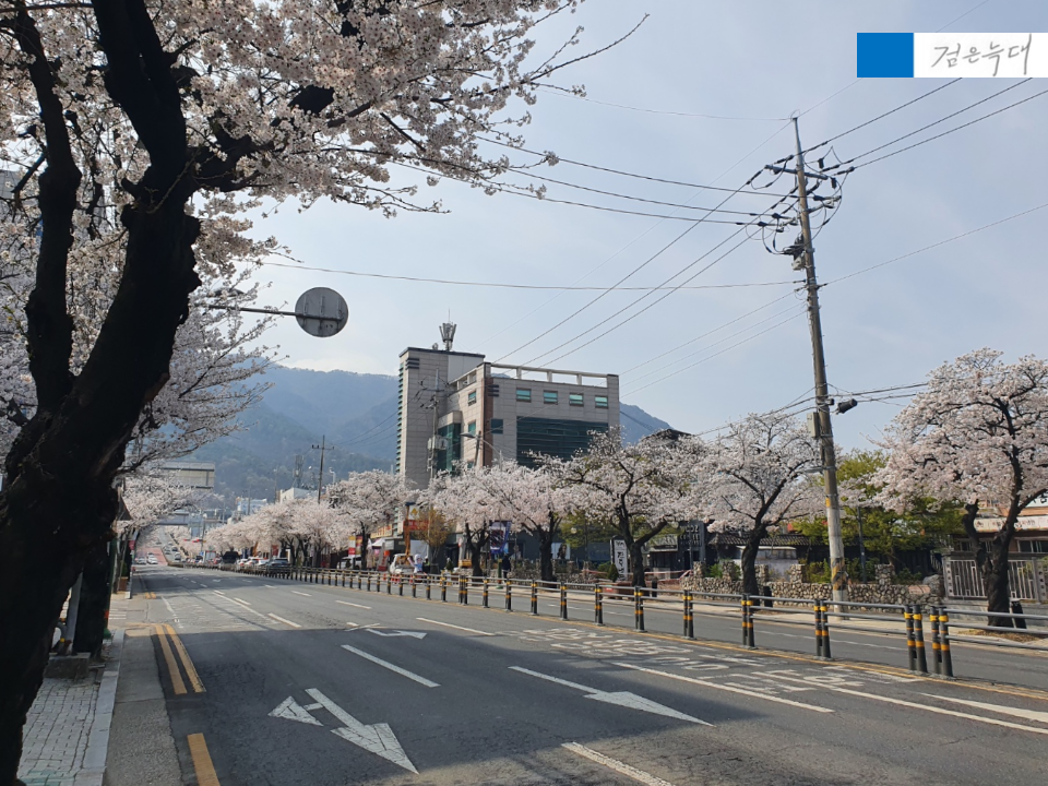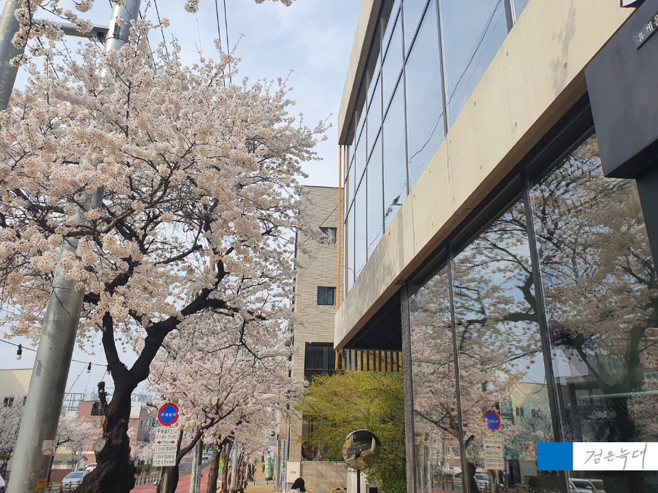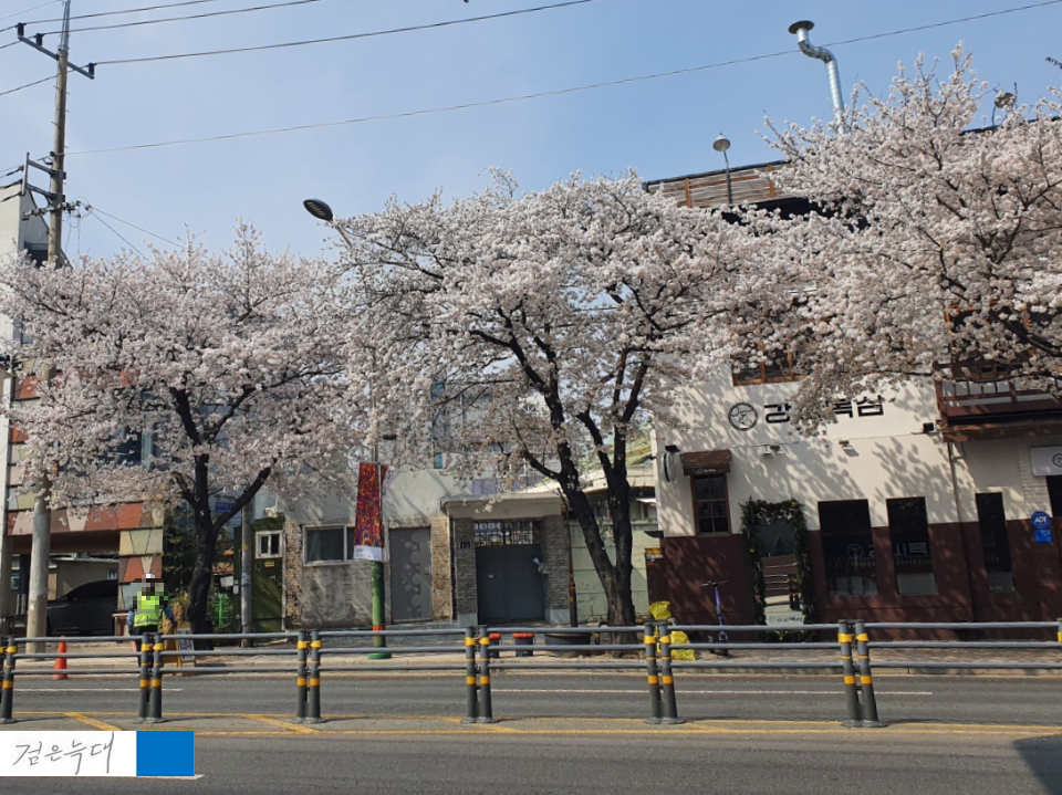 대로변에 있어서 벚꽃나무 가로수와 함께