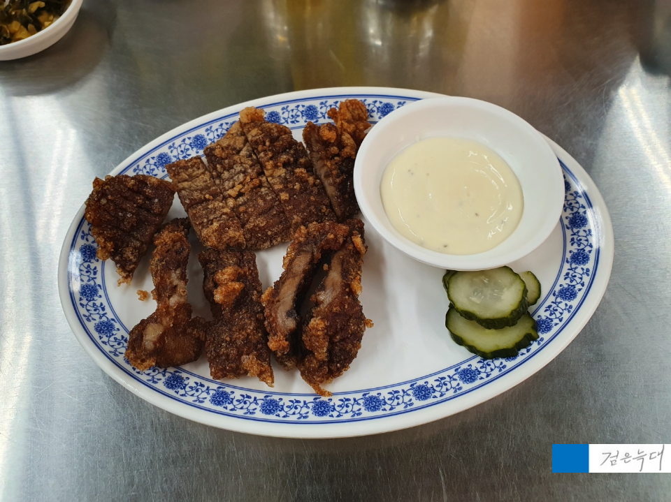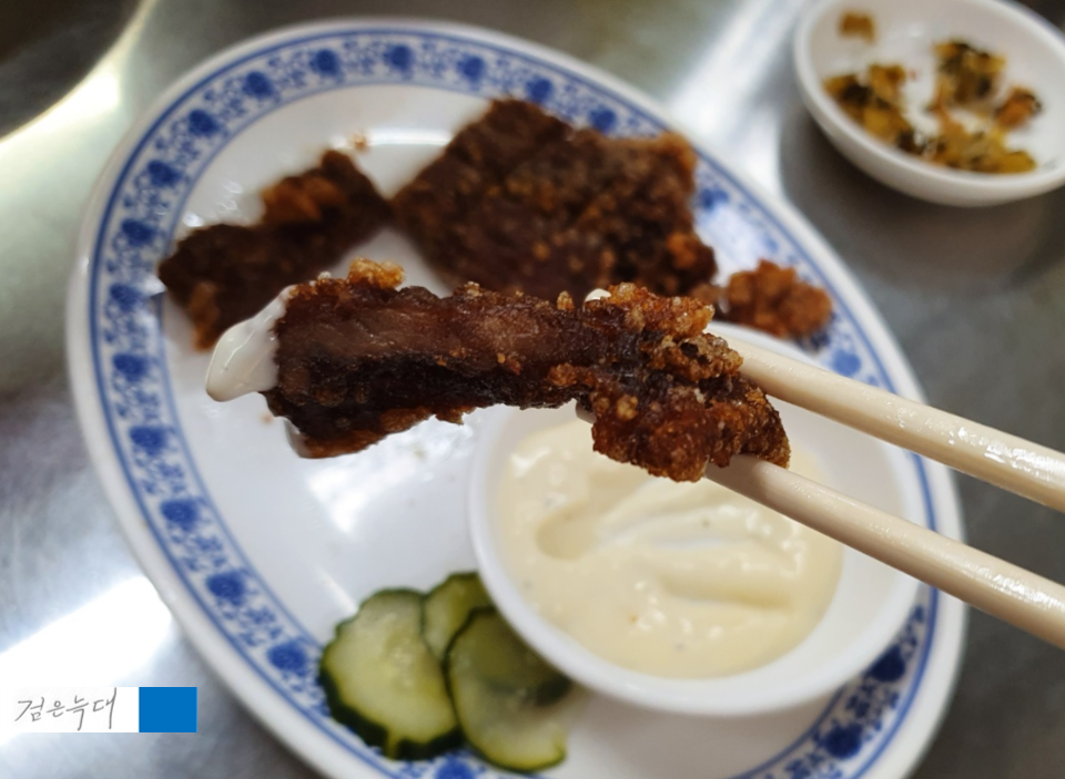 돼지갈비를 튀겼으니 맛이 없을 수 없죠