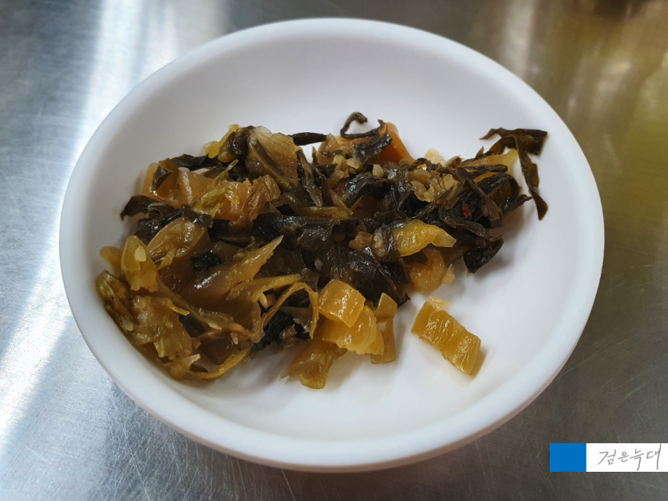 먹거너 넣어서 먹는 배추와 갓무침입니다