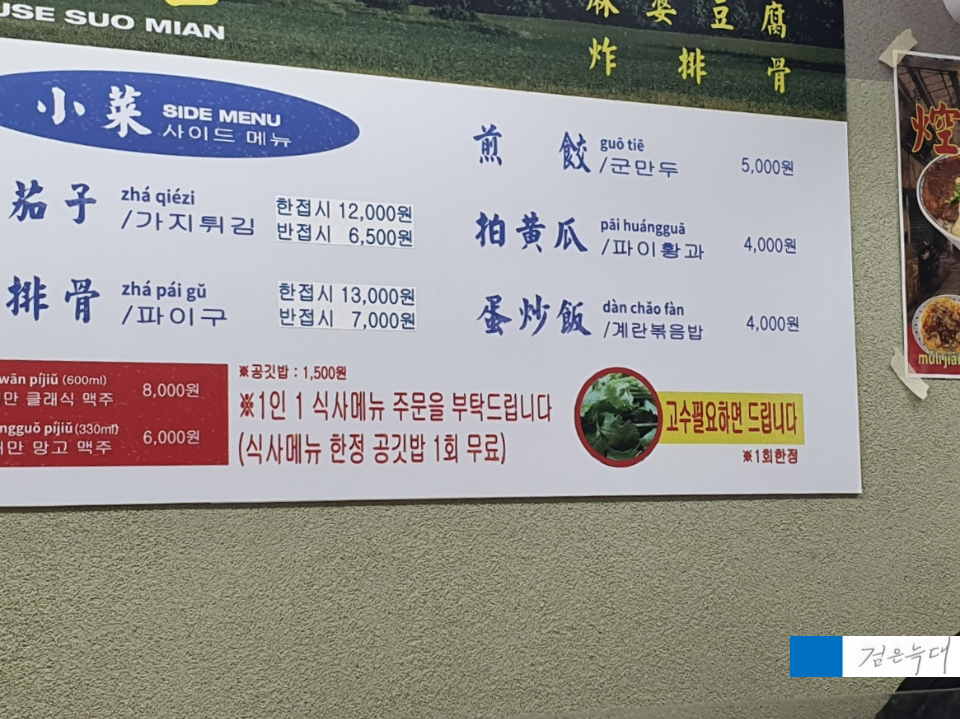▷ 고수는 메뉴 주문 시에 주문해야 나옴