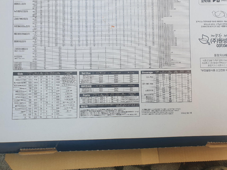 원재료나 영양정보들이