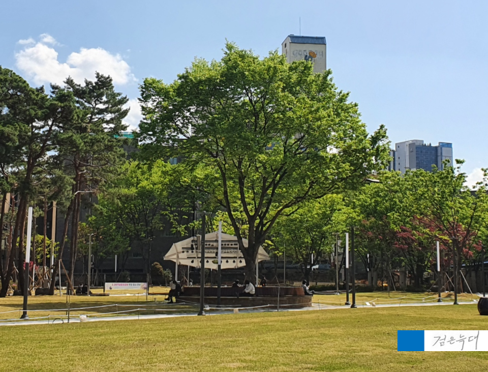광장을 중심으로 양 쪽에 앉을 수 있는