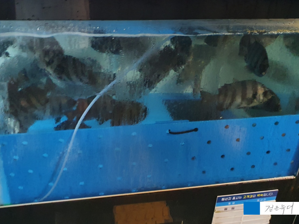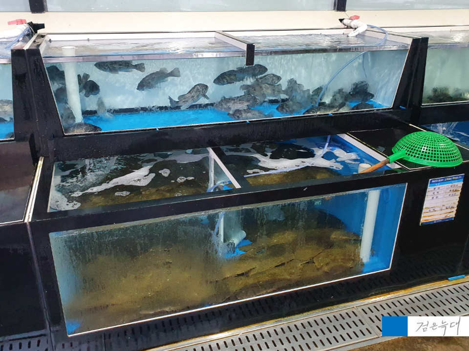 해산물들의 수조가 있습니다