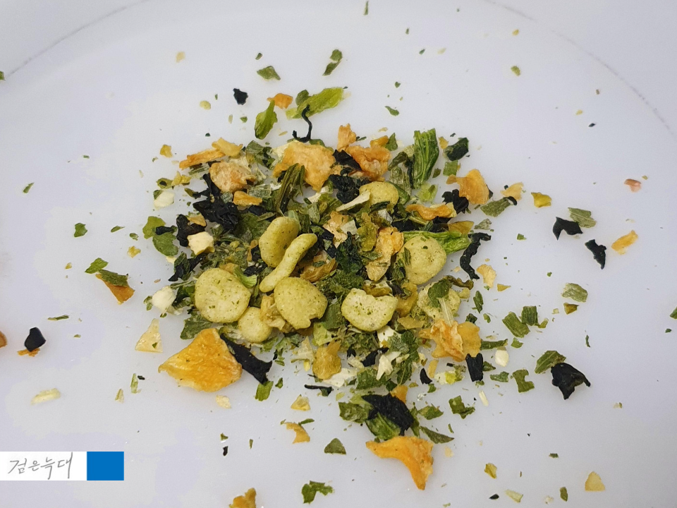 채소들과 미역, 튀김가루가 들어 있습니다