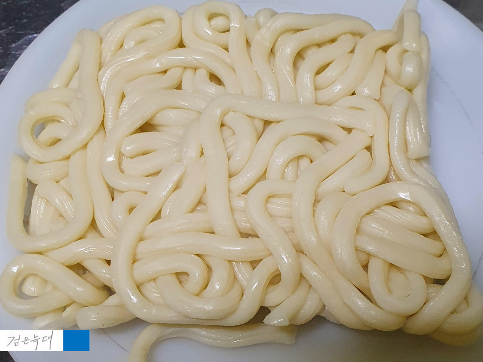 굵은 숙면 우동 면발이 들어 있습니다