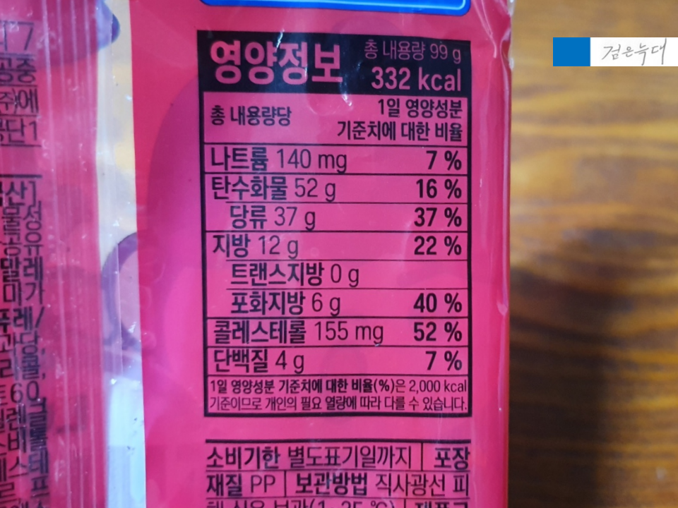총 중량은 99g 열량은 332kcal입니다