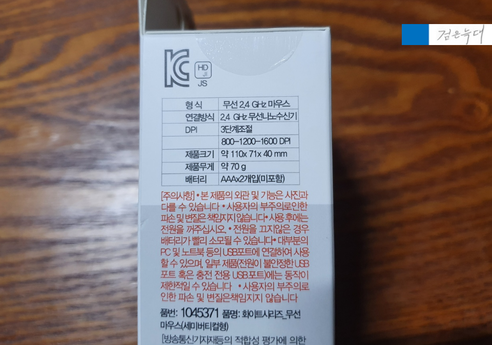 무선마우스인 만큼 건전지는