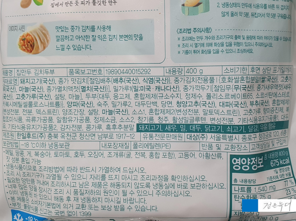호밍스 집만두 김치두부 원재료