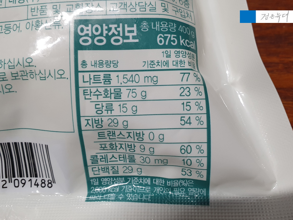 중량은 400g 용량은 675kcal입니다