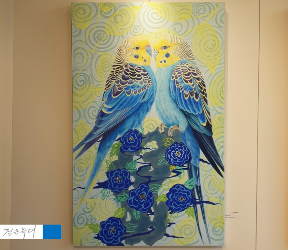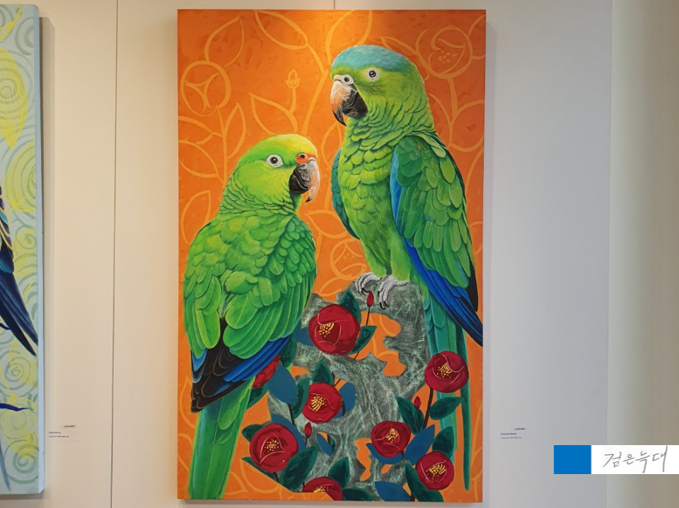 앵무새가 두 마리 그려진 그림