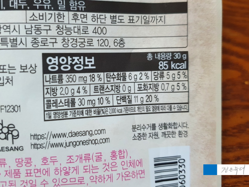총 중량은 30g 열량은 85kcal입니다