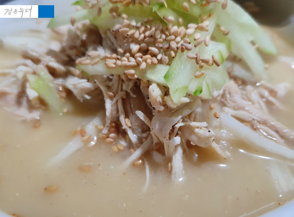 ▷ 닭육수에 초간을 한 국수 메뉴