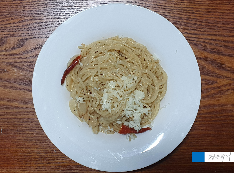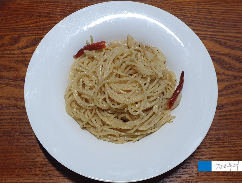 모습과 함께 파스타를 만들어 먹은