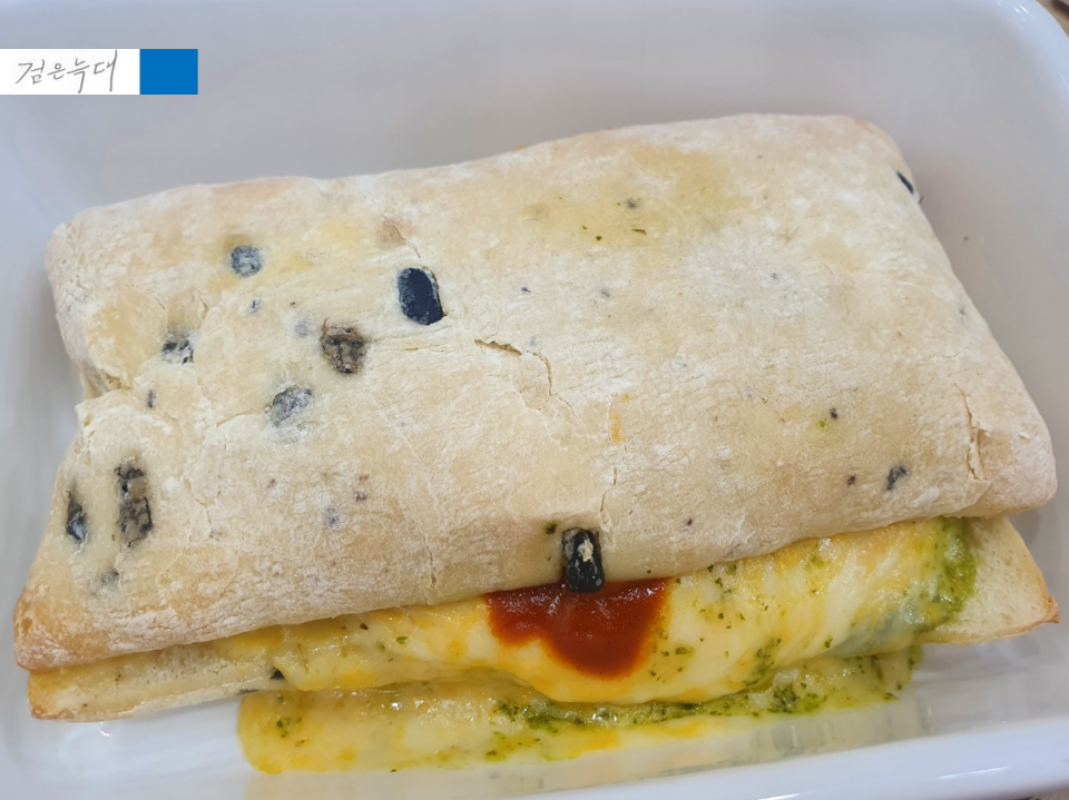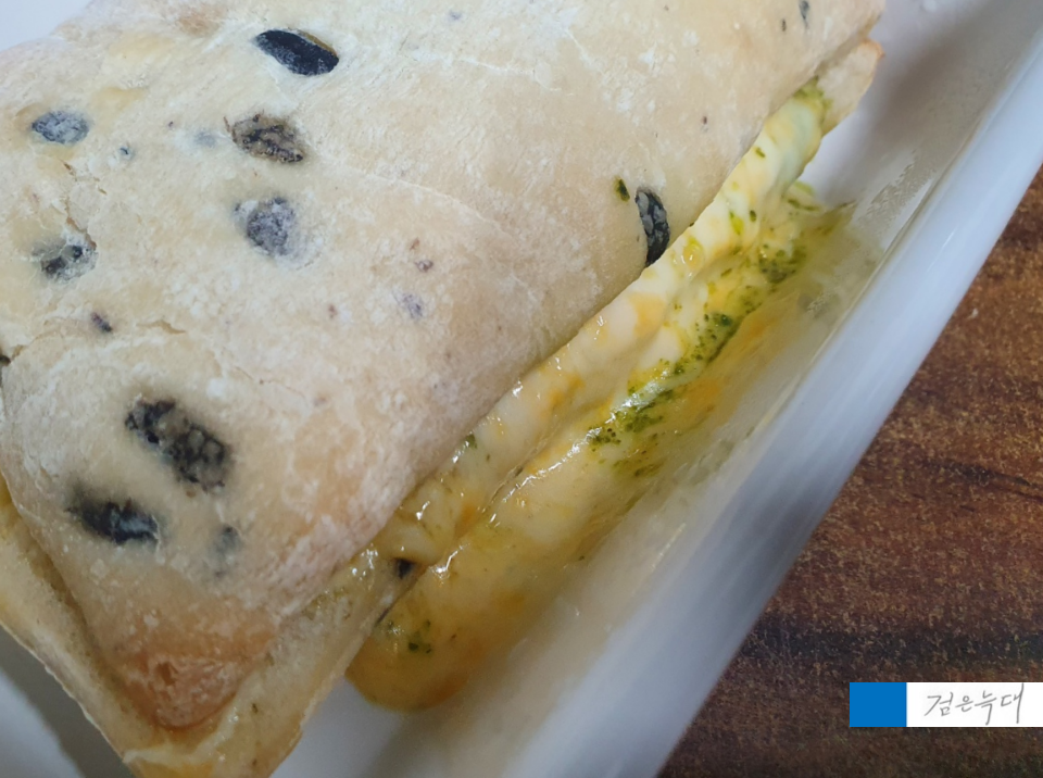 블랙올리브치아바타 빵을 씁니다