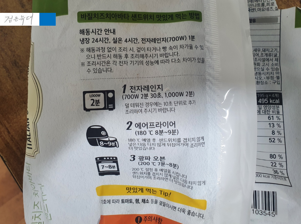 바질치즈 치아바타 샌드위치 원재료입니다