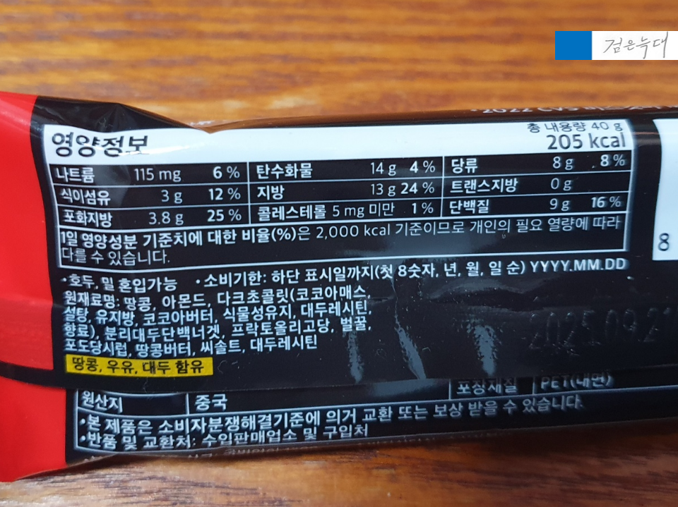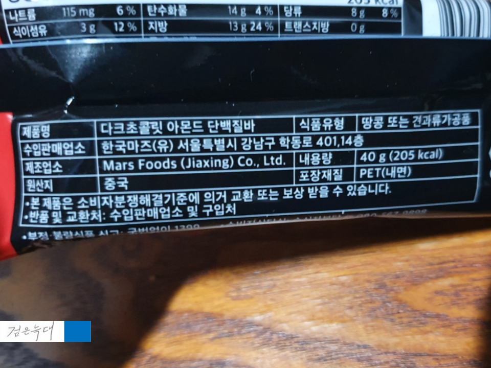 뒷면에는 다크초콜릿아몬드단백질바의