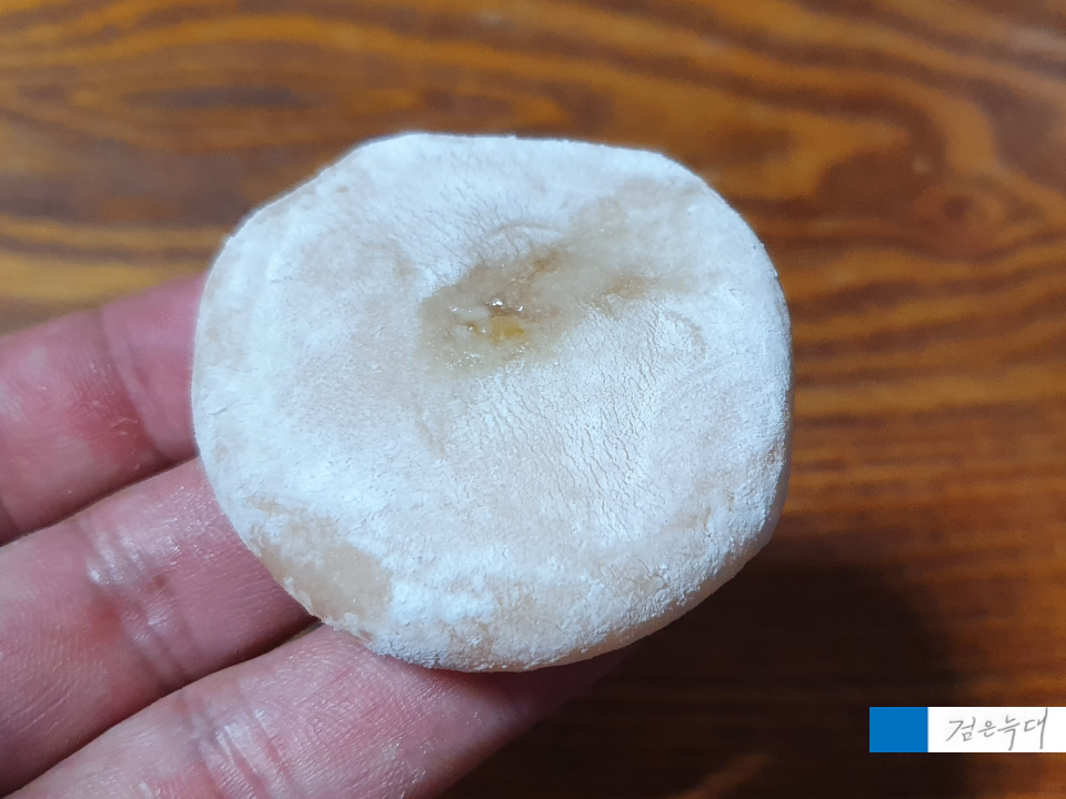 겉에는 하얀 가루가 묻어 있어서
