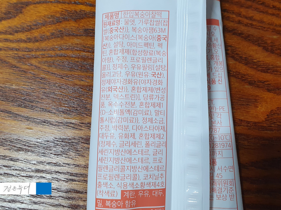 한입복숭아찰떡 원재료입니다