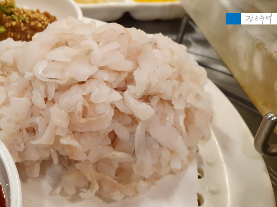 ▷ 아나고회는 뼈 없이 잘게 썬 포실한 식감