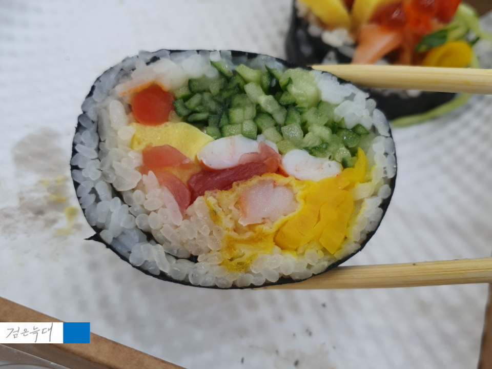 단무지, 오이, 새우, 계란, 유부 등