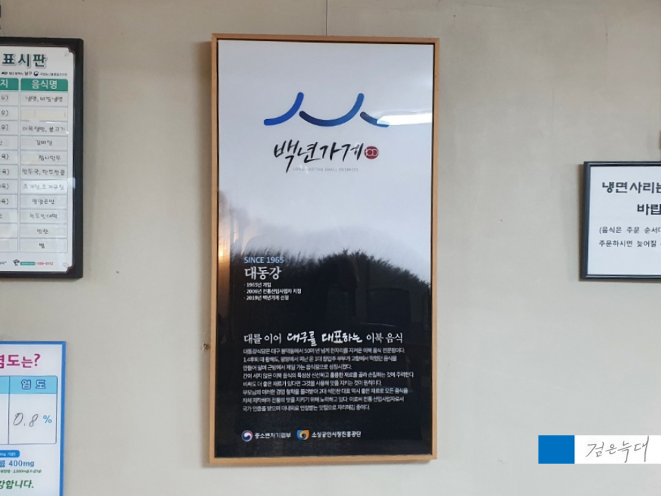 대구에도 다른 지역 못지 않게오래된 노포 냉면맛집들이많이 있습니다 오늘 소개하는 봉덕동 대동강도현재 대를 이어서 운영하고 있는노포맛집인데요 냉면맛집이라고 해서 여름에 냉면만