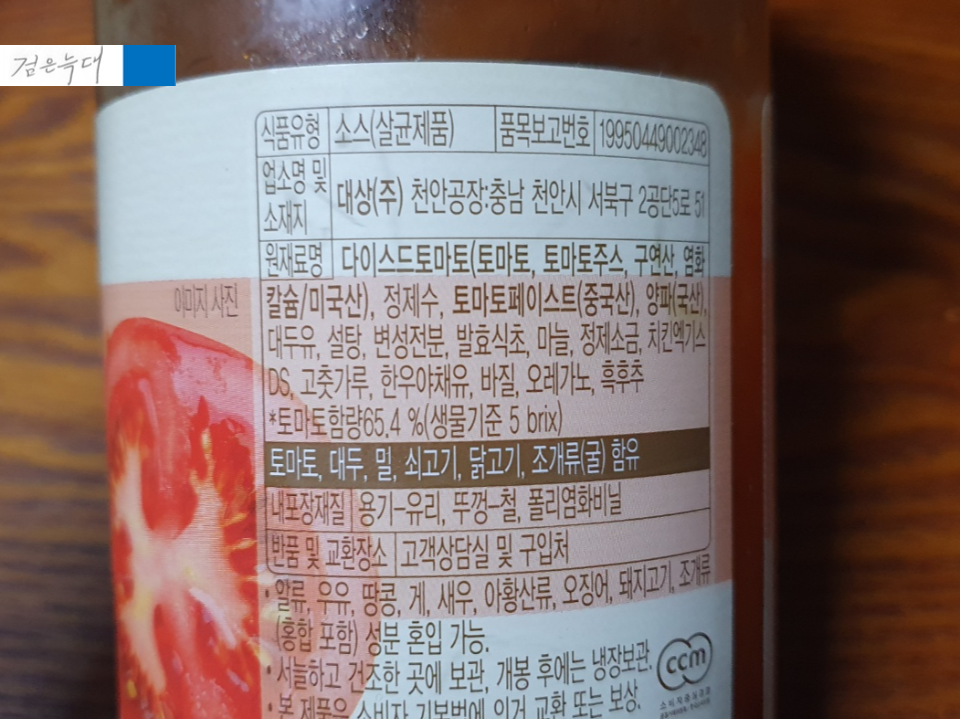 익숙한 유리병에 소스가 담겨 있습니다