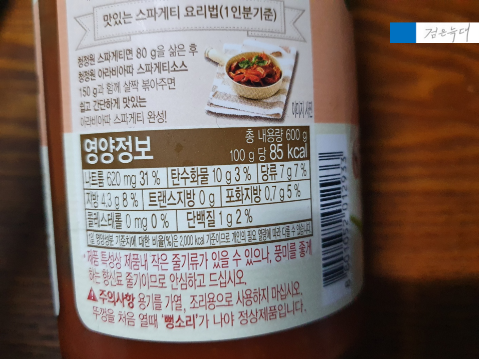청정원 아라비아따 스파게티소스에는