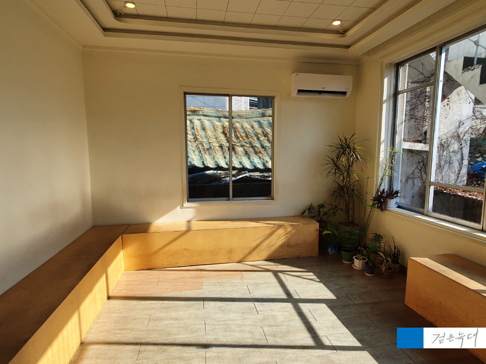 창문 쪽에는 햇빛이 가득 들어 오는데