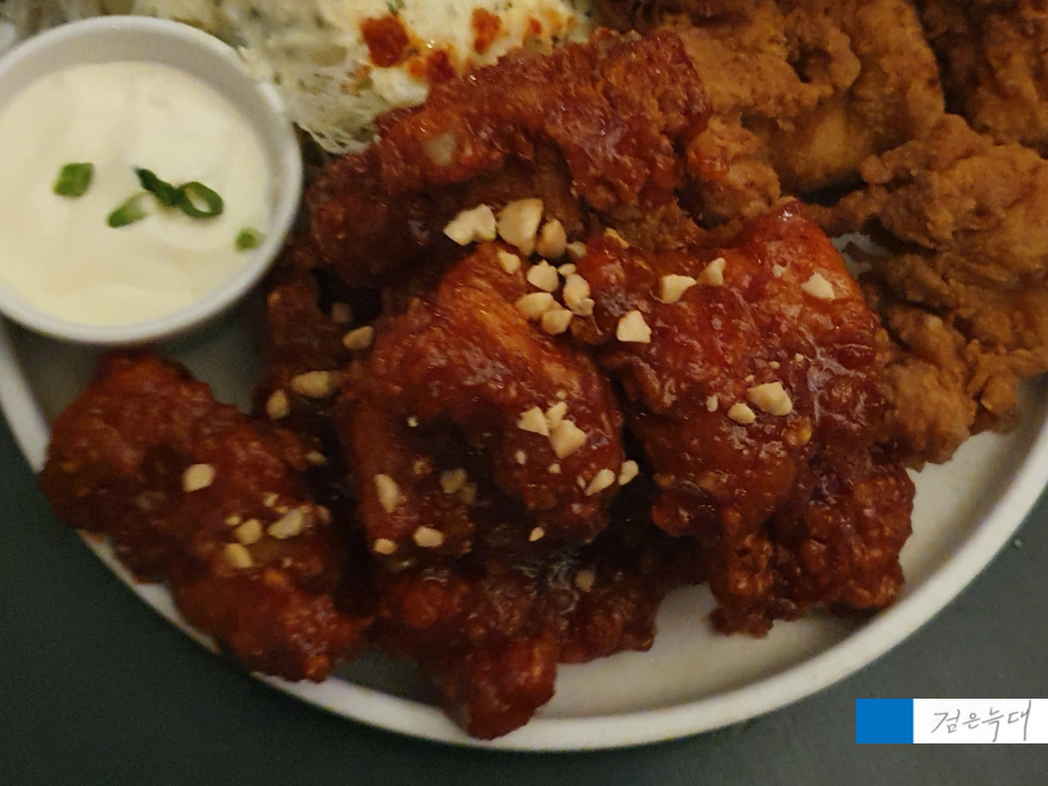 ▷ 살짝 매콤한 맛이 나는 후라이드치킨