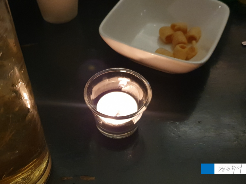 테이블에는 이렇게 작은 초가
