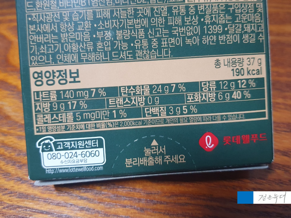 중량은 37g 열량은 190kcal입니다